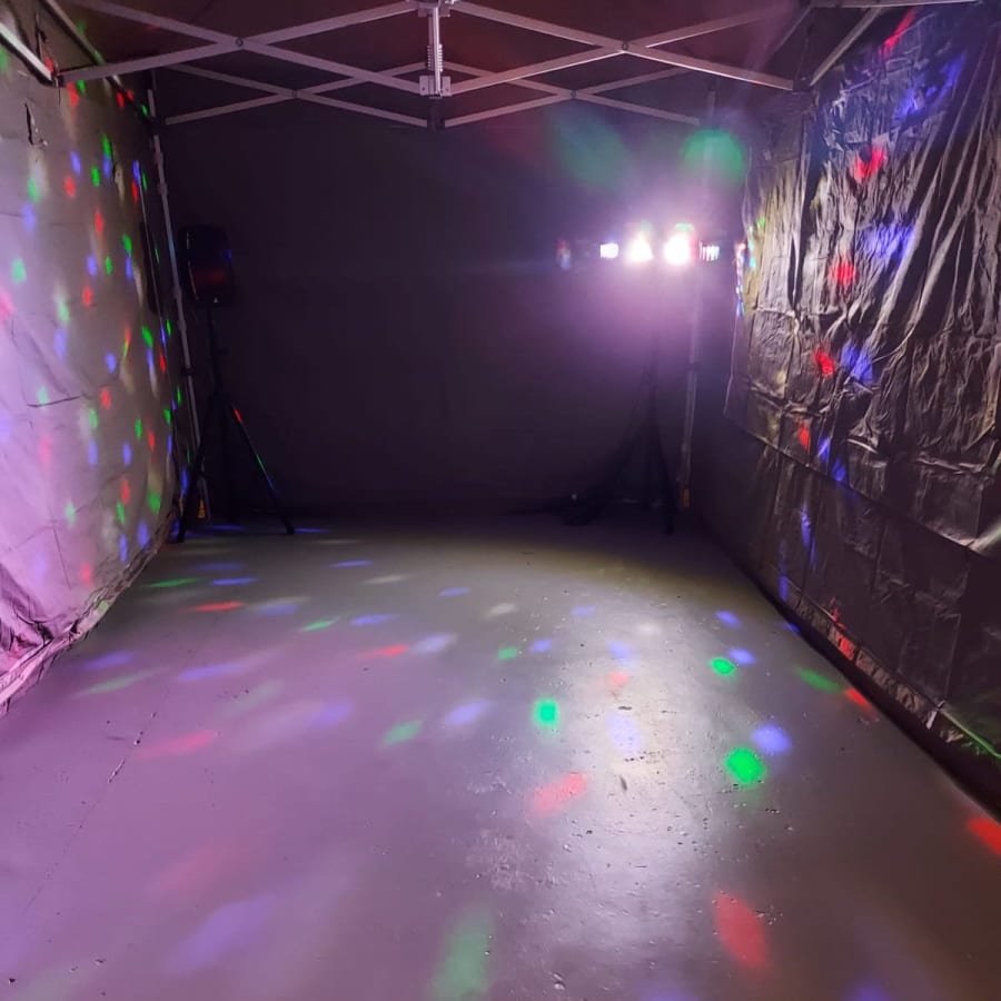 This is our Christmas party tent, you can party away come rain or shine. Get the party stared with your friends and family making memories to cherish. Our party tent will be fully set up on delivery with or without the sides. comes with our Party lights, Large speaker and Snow Machine. Our gazebo isn't the cheap ones but a commercial grade and is fully water proof.