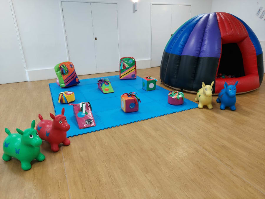 Made of soft foam covered in bright, colourful wipe clean surfaces these shapes have a multitude of tactile surfaces to explore. zips, squeaker, mesh, buttons, bells. Our soft play is set up on safety matting too.