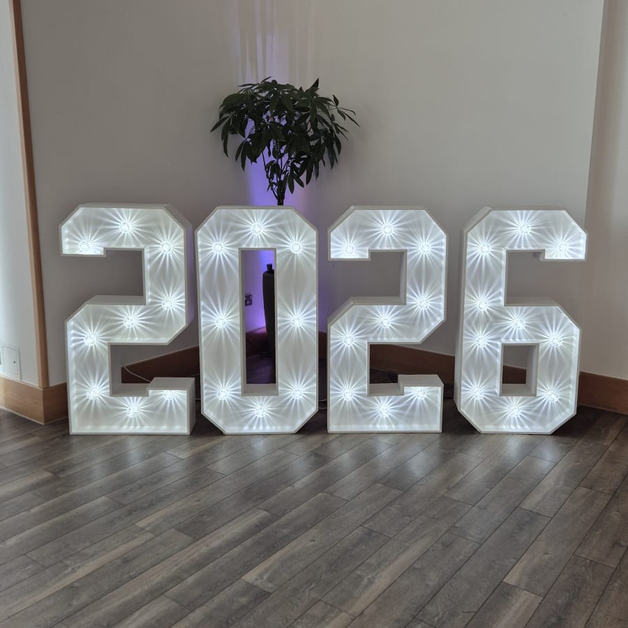 Add a personal touch to your event, stand out and make a statement with our 4ft 2026 number. These really do stand out from the crowd, great as a picture backdrop at your new years eve event. They are delivered and set up at a time to suit you. we cover Nottingham, Derby and some Leicester.