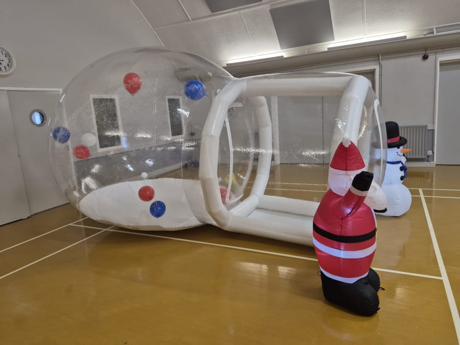 Bring the magic of a winter wonderland to your holiday event with our giant inflatable snow globe! This larger-than-life photo booth lets guests step inside a festive, snowy scene and become the star of their own Christmas card. With a high-quality, transparent dome, families, friends, and colleagues can pose for incredible pictures against a picturesque backdrop and frolic among the cheerful inflatable props.