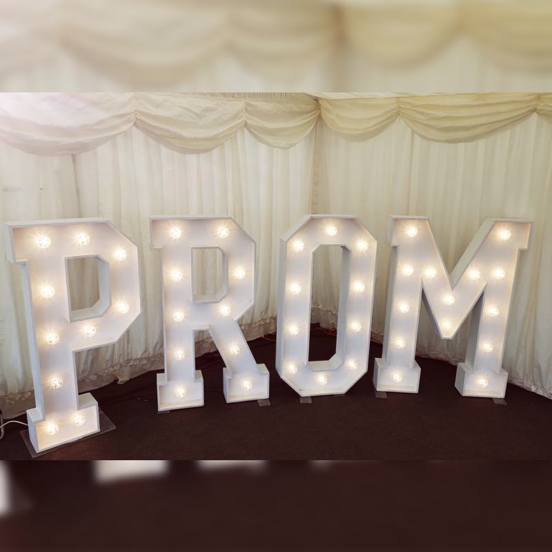 Add a personal touch to your event and stand out and make a statement with our 4ft letters. These are great for at the prom, leaving your school & friends behind as you venture into the next stage of your life is exciting and scary. These letters make a stand out piece and a background for all the pictured memories.