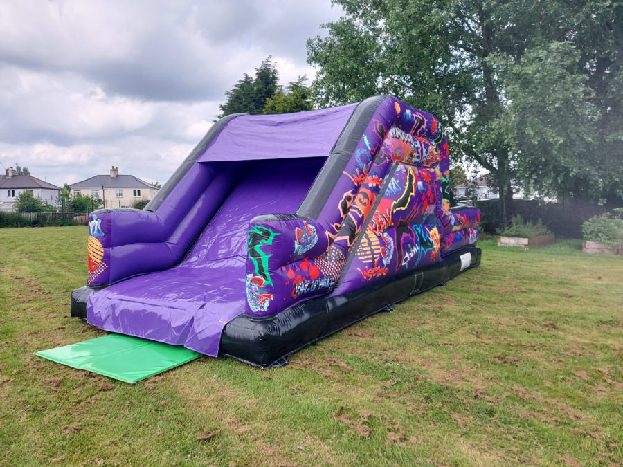Try and climb the vertical wall.... follow the arrows and run straight towards the wall, hopefully the momentum will help you reach the top. Once at the top you have a 8ft slide to enjoy. For the littler ones there is steps to climb to reach the top instead. So if a challenge is what you want this is perfect for you.