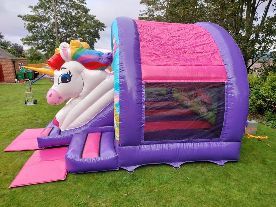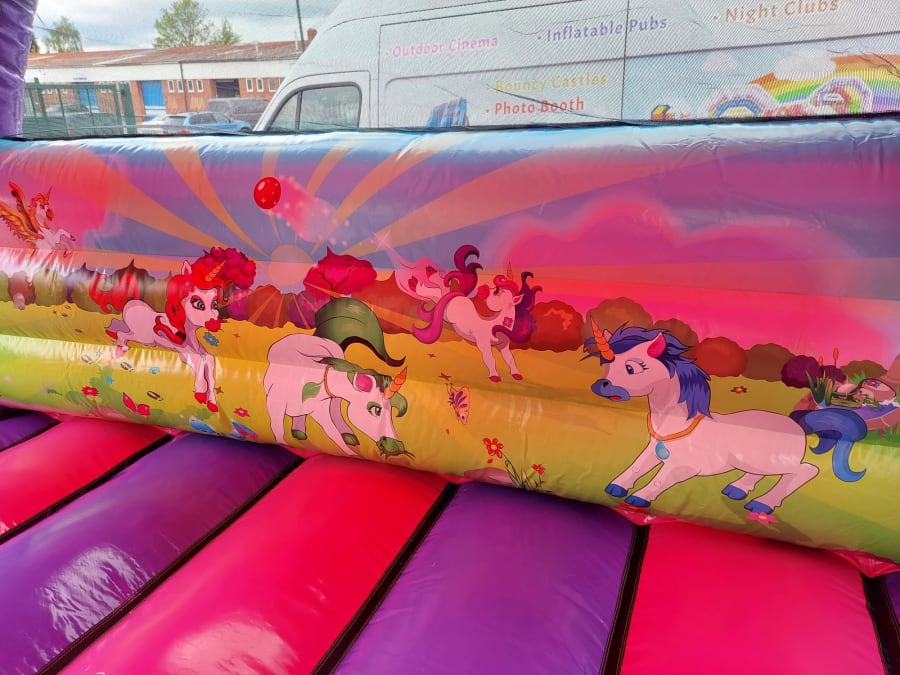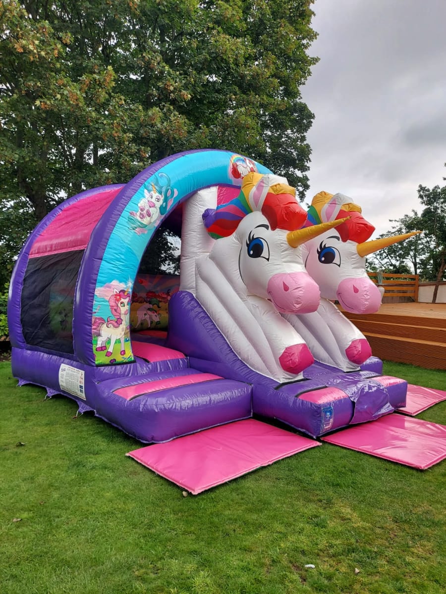 This magical Unicorn Front Slide will definitely turn heads at your little ones party, and will create hours of fun with imaginations running wild. With easy access the the bounce area both sides of the slide and netted sides to help see the littlest ones.