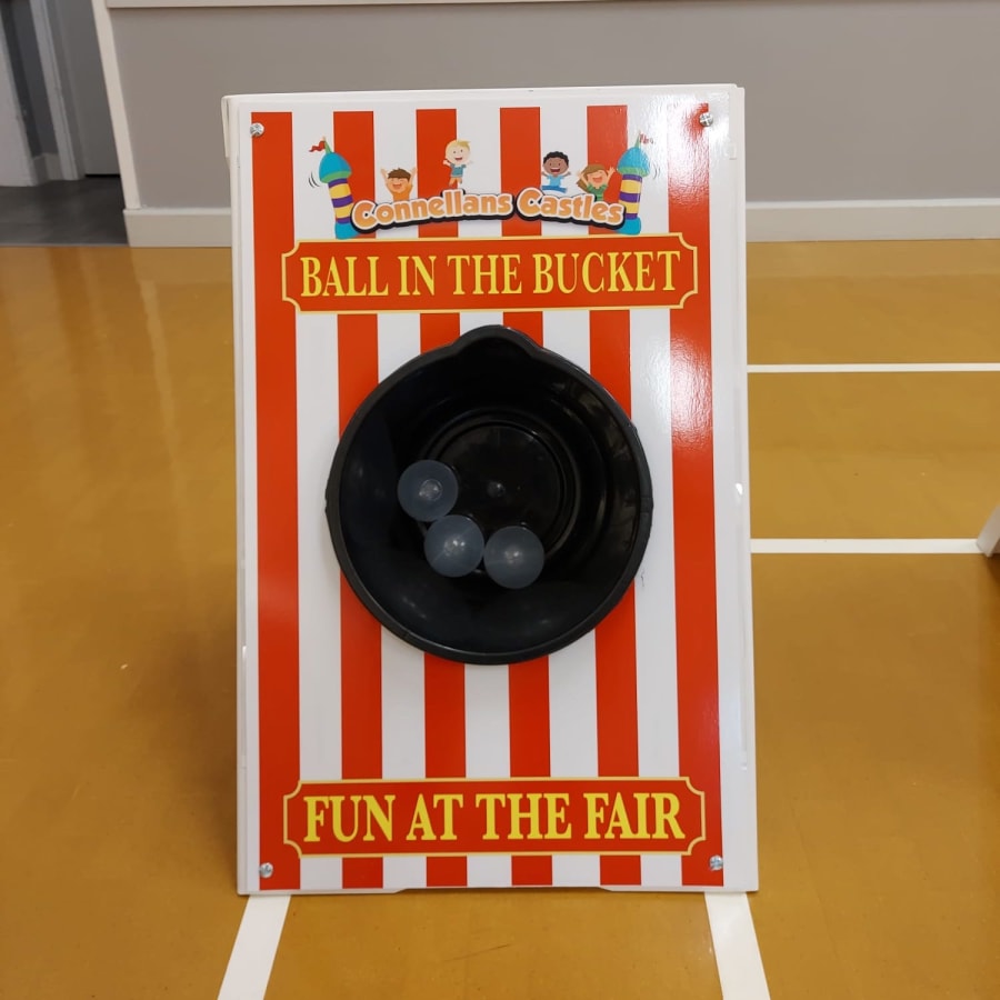 The aim of the game is to throw three balls, one at a time from a distance and to have them land in the bucket without rolling out. It really is harder than it looks, but great fun. Try not to catch the edges, gently does it!