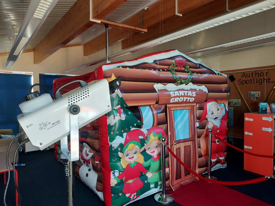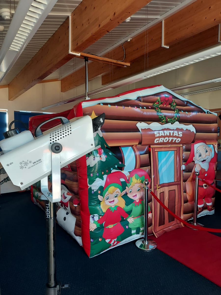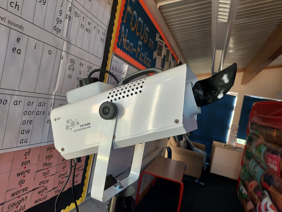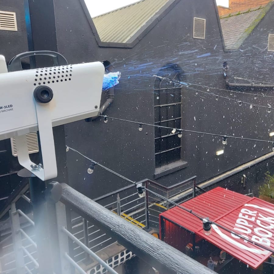 Snow machine will be set up full with fluid (1 ltr bottle provided), and comes with a stand to help position where is best for the snow to flow.