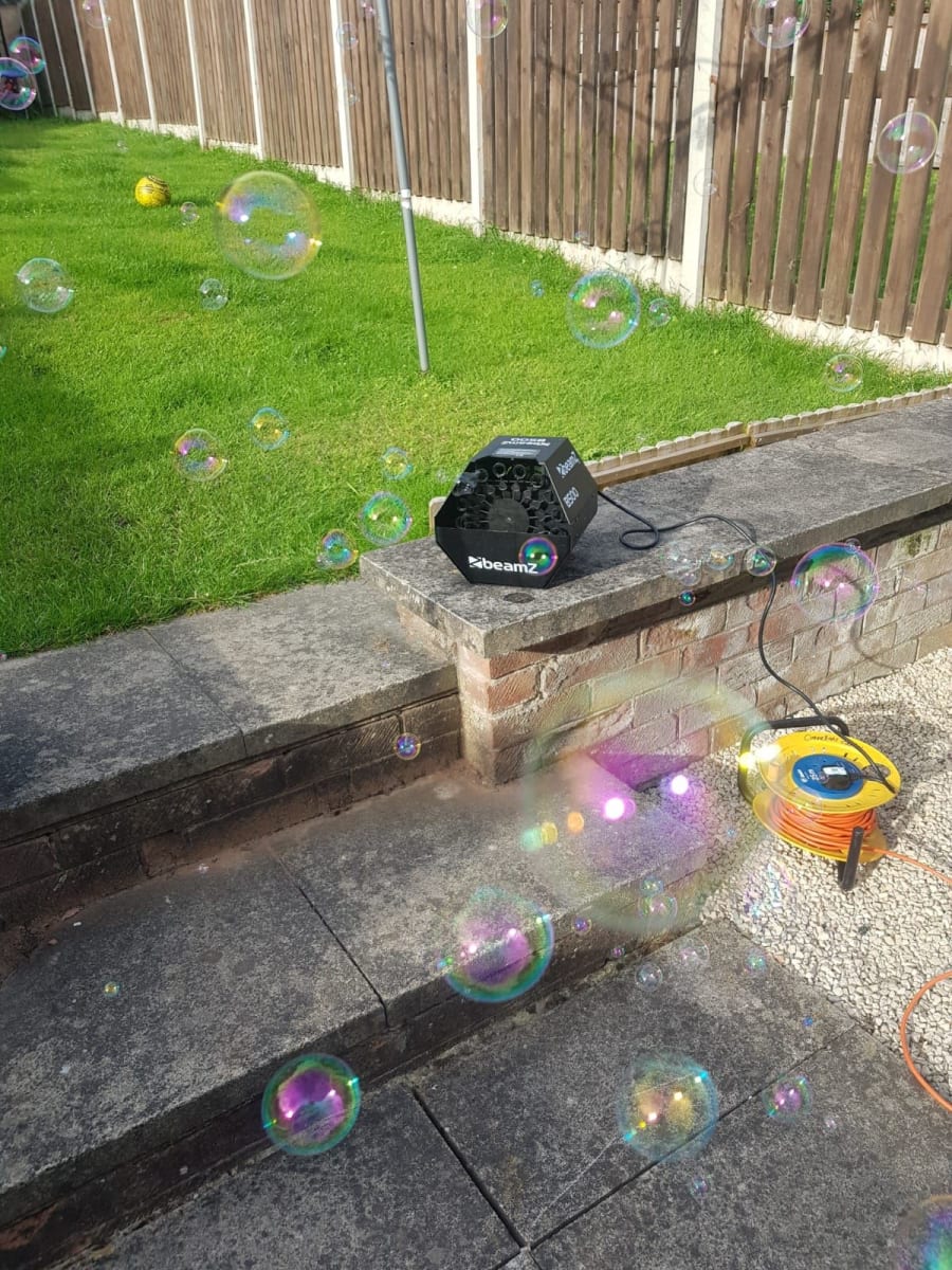 Bubble machine will be set up full with fluid and enough for another top up. (1 ltr bottle provided)
