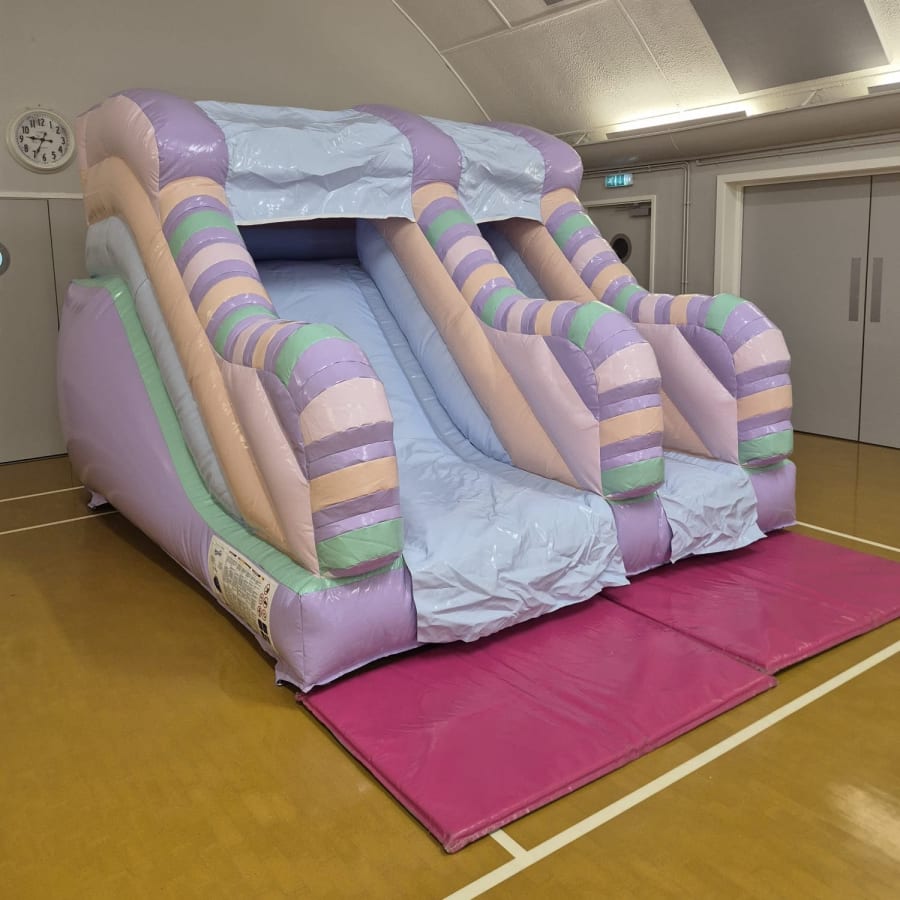 This stylish pastel-coloured inflatable slide is a fantastic centrepiece for any event, offering hours of bouncing and sliding fun. Its soft, calming colour palette—often featuring shades of mint, pink, yellow, and blue—makes it a perfect, gender-neutral addition to parties, weddings, christenings, and garden gatherings