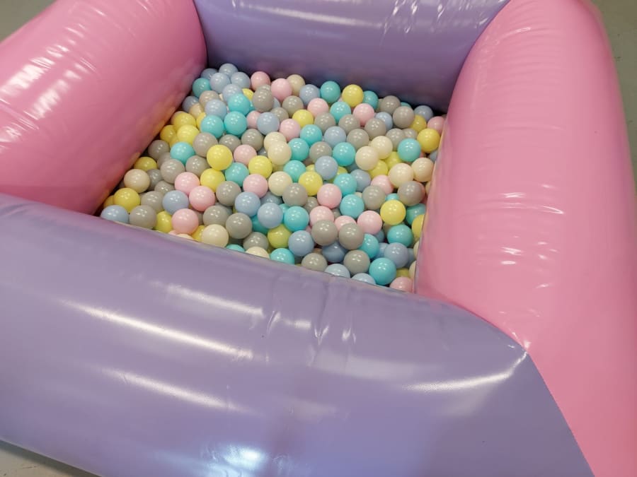 6ft by 6ft pastel ball pool with 700 balls the children can have fun digging down and pretending to swim, great for toddlers. can be teamed up with any of our castle Pastel Slide Castle. For indoor use only.