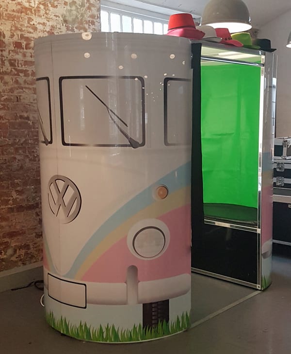 Our photo booth hire is a great addition for special occasions such as weddings, birthday parties, wedding receptions, proms and balls. Guests will be able to take home photos of the occasion on the various different backgrounds. We will also put all the images onto a usb stick for you to keep (this will be given to you on the night of the event, So you can see exactly what fun people got up to!) Our photo booths come in several different body designs and you can choose from white chesterfield, gloss black (Photo Booth design) and retro VW camper.