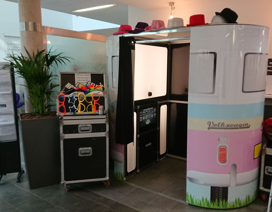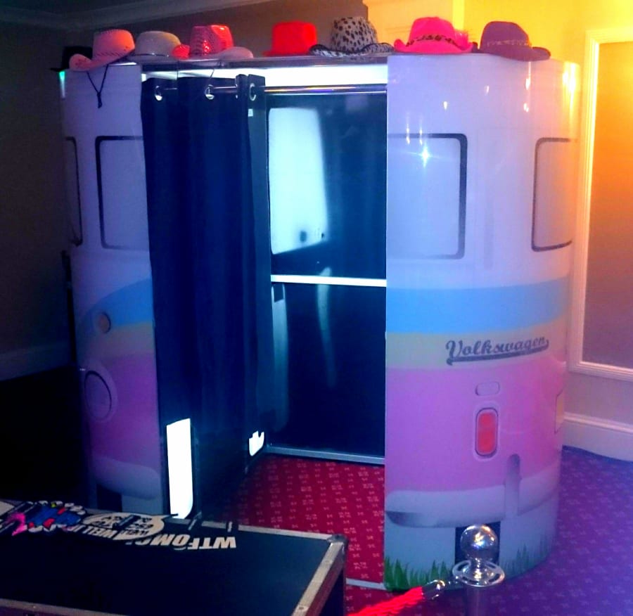 Our photo booth hire is a great addition for special occasions such as weddings, birthday parties, wedding receptions, proms and balls. Guests will be able to take home photos of the occasion on the various different backgrounds. We will also put all the images onto a usb stick for you to keep (this will be given to you on the night of the event, So you can see exactly what fun people got up to!) Our photo booths come in several different body designs and you can choose from white chesterfield, gloss black (Photo Booth design) and retro VW camper.
