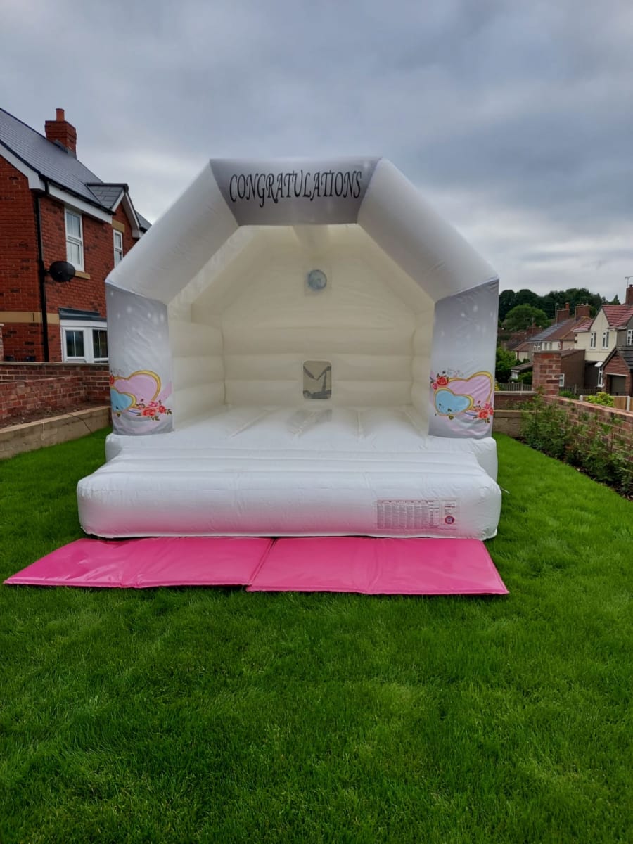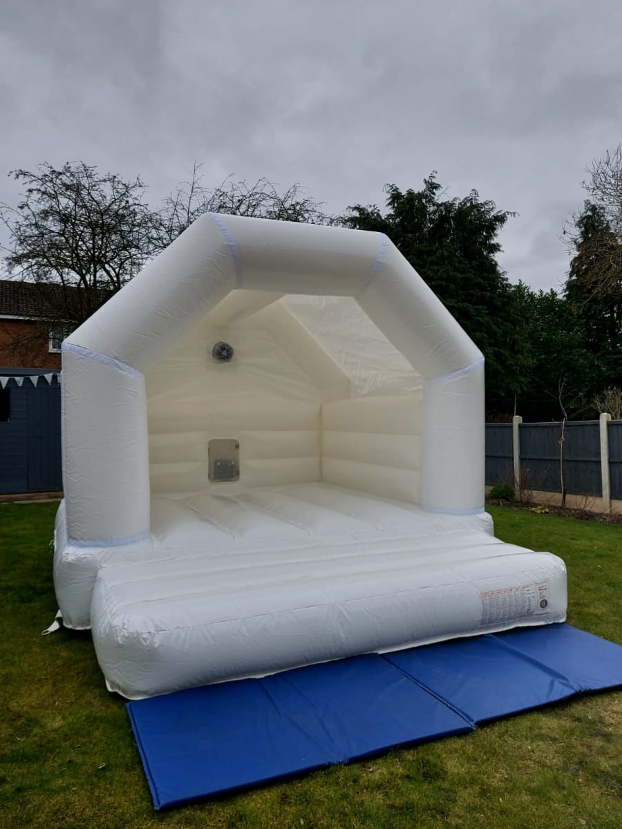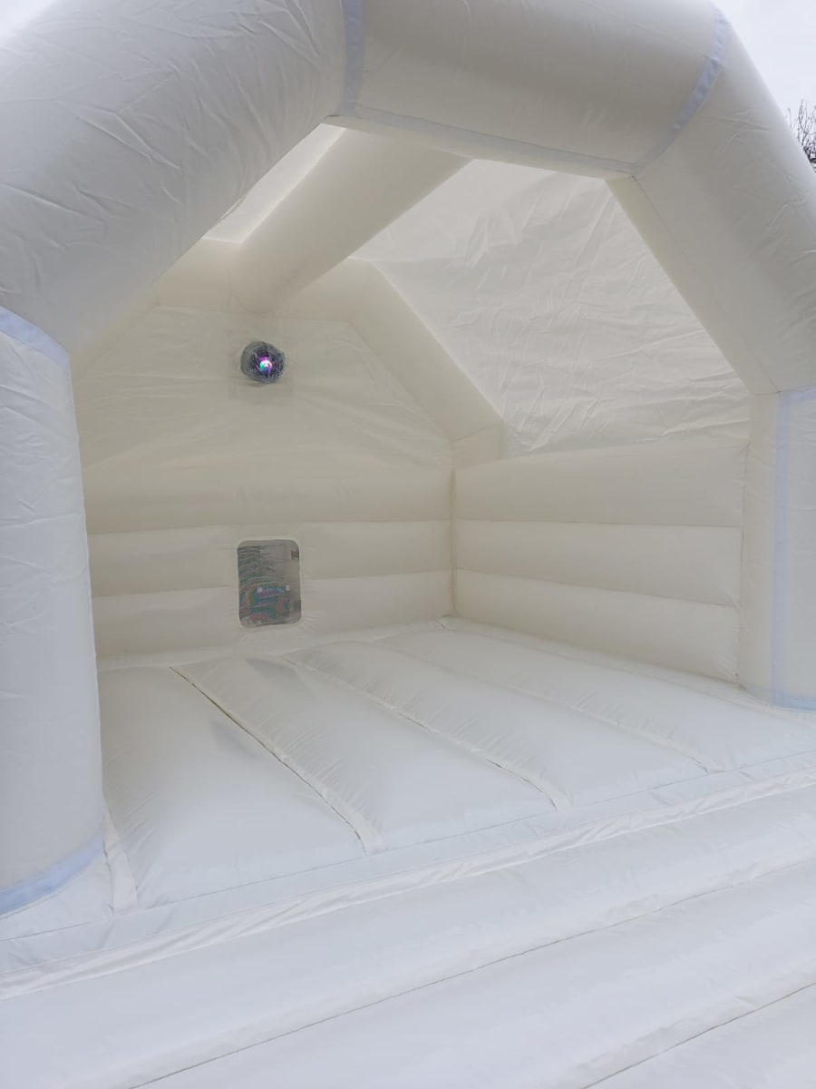 Please be aware that the colour of this wedding bouncy castle hire inflatable is 100% brilliant white and must be treated with respect. Please remember this castle must remain immaculate for wedding purposes and as such We will also require a £100 refundable deposit at the time of booking.