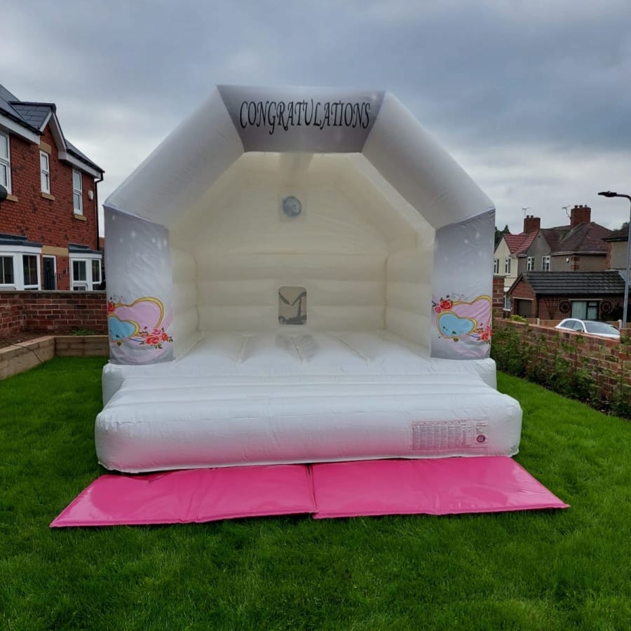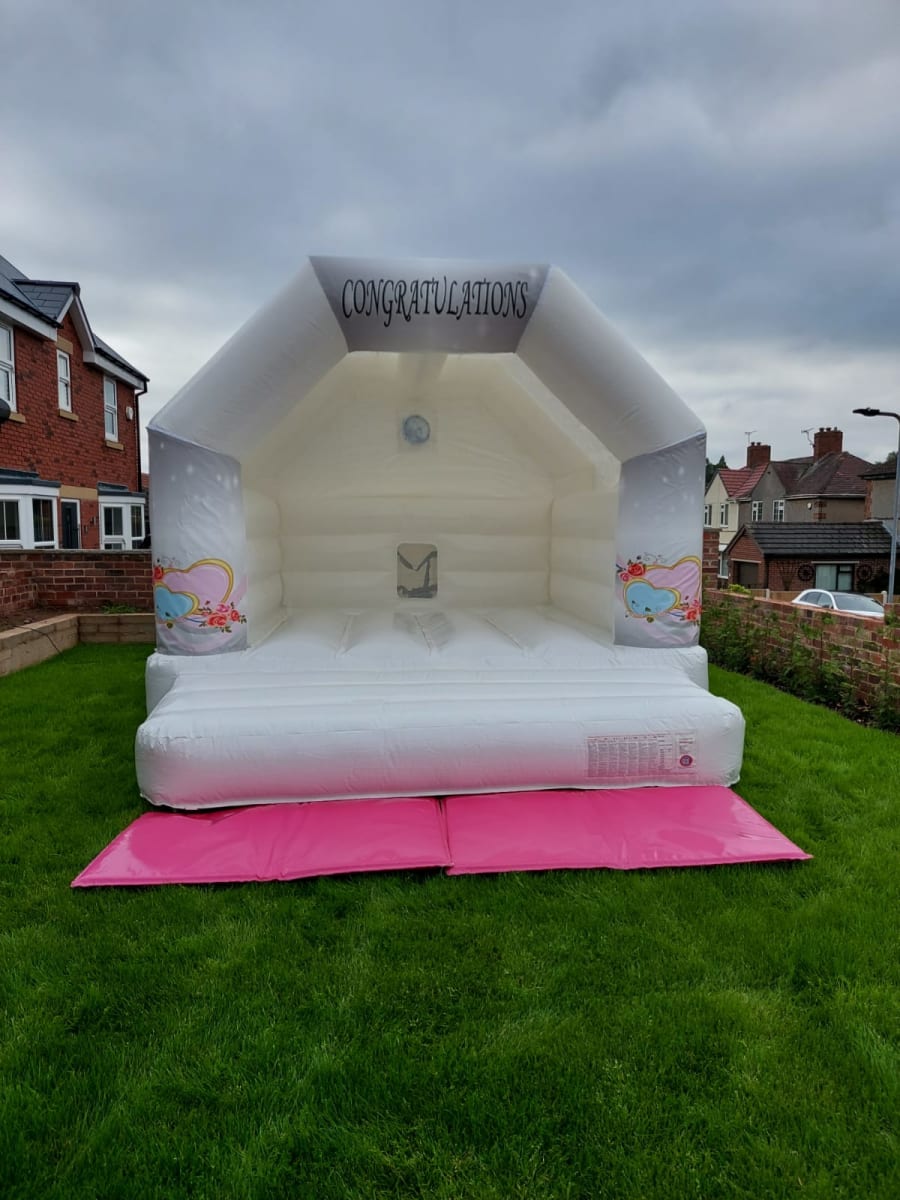 If you are looking for something unique and memorable on your wedding day then why not hire this perfectly white wedding themed castle, it can come with or without artwork. This can be used by both adults and children, It will bring the wow factor to your special day. This castle can come also with lights and music to make it extra special please check out the link White Wedding Castle With Lights & Music.