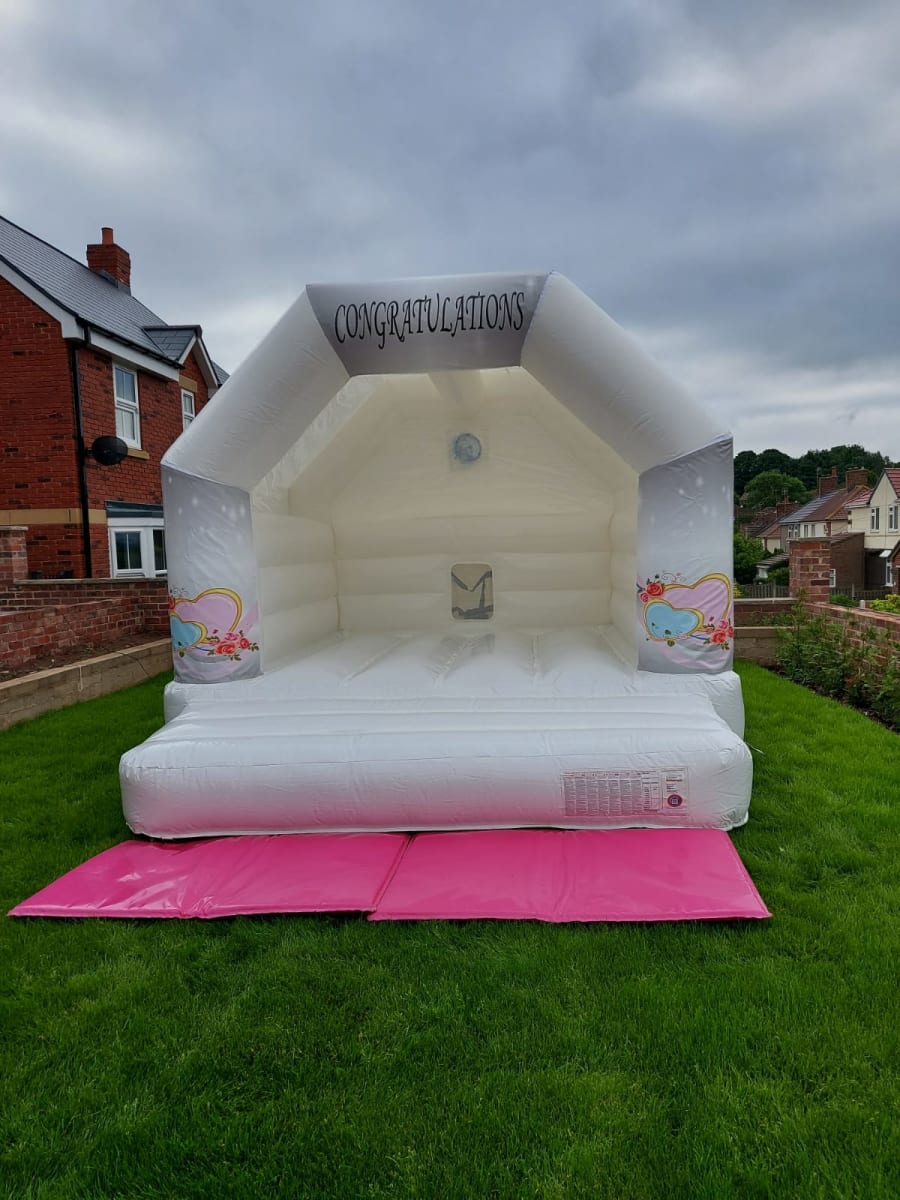 Please be aware that the colour of this wedding bouncy castle hire inflatable is 100% brilliant white and must be treated with respect. Please remember this castle must remain immaculate for wedding purposes and as such We will also require a £100 refundable deposit at the time of booking.