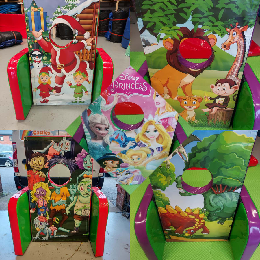 Here is our brand new peekaboo boards, it comes in 4 designs which you can choose your preferred one at the check out. This is a great add onto our soft play sets, with matching artwork. So if your littles ones are mad on anything jungle, dinosaur, toy story or princess then this will keep them busy pulling silly faces through the holes.