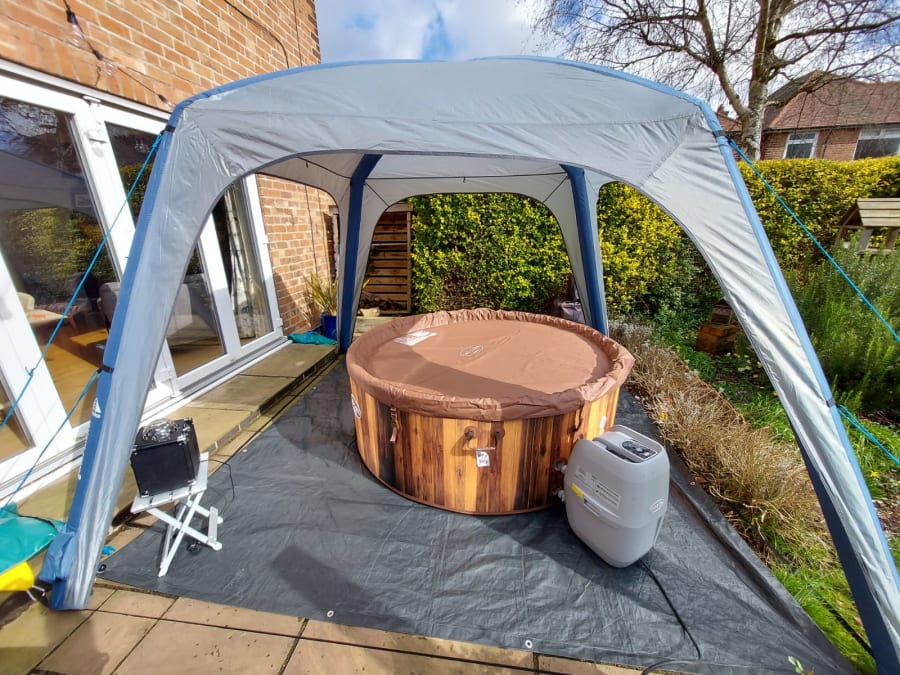 - Water Supply ( outdoor tap) with hose to reach and fill the hot tub