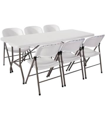 This hire is to be dropped with you on the 23rd of December and collected the 27th December or drop off on the 30th December and collected on 3rd of January (times will be confirmed by email to give 2 hour slots). this works out at £10 a day. The chairs and table can all be folded down easily for storage when not being used.