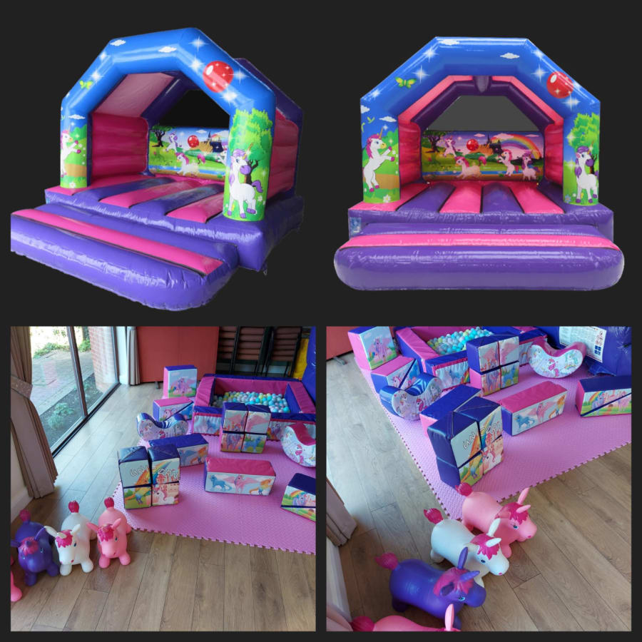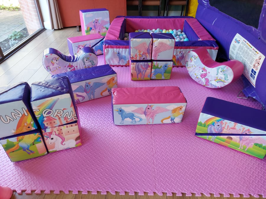 Bring a touch of magic to your child's party with our Unicorn castle and Soft Play Package! This package includes 15 fun and colourful soft play shapes, a ball pool and 4 unicorn hoppers, making it the perfect addition to any children's event. The soft play shapes are designed to encourage imaginative play and physical activity, while the ball pool provides endless fun. Plus, with the included safety mats, you can be sure that your child and their friends will have a safe and enjoyable experience. Book now to make your child's party one they'll never forget!