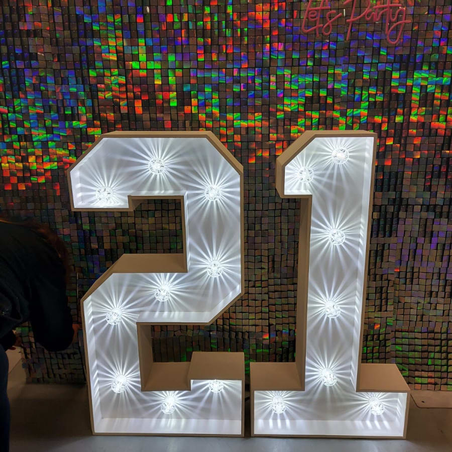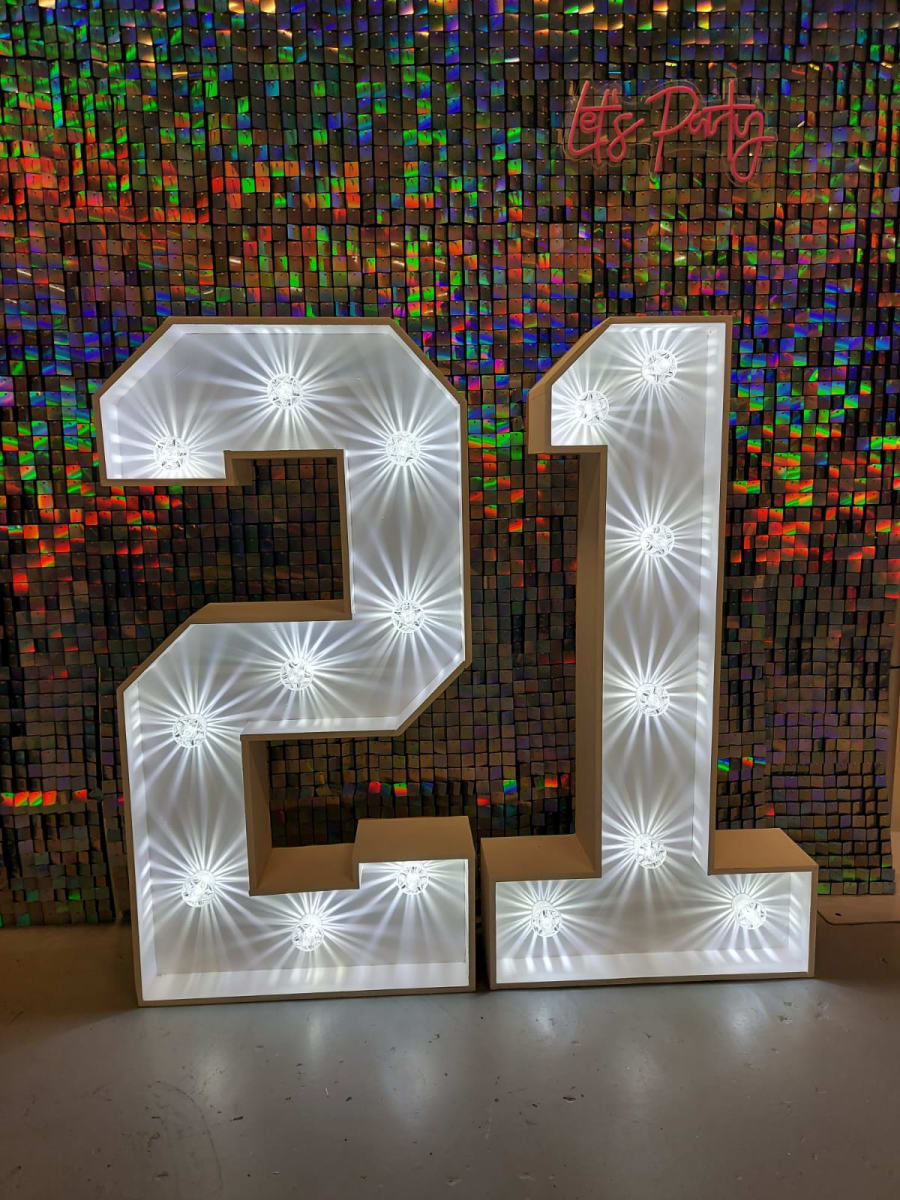 Are you looking for something to bring an extra sparkle to your party? Looking to take amazing photographs? Our 4ft LED Numbers & Letters are perfect for all occasions. Our number 21 is great for a mile stone birthday. Have them as a statement piece by an entrance or as a backdrop for your photos, our numbers look great anywhere!